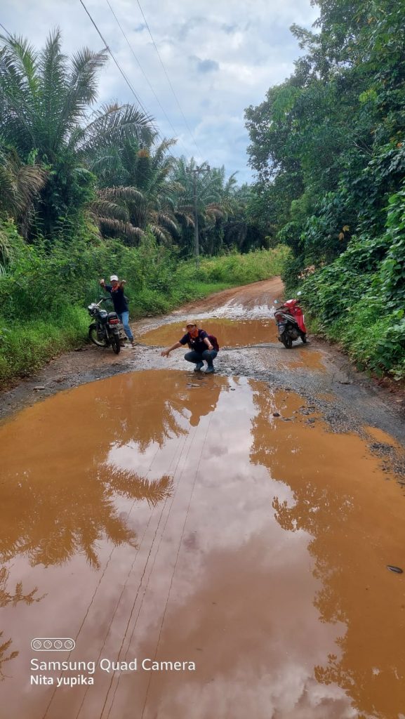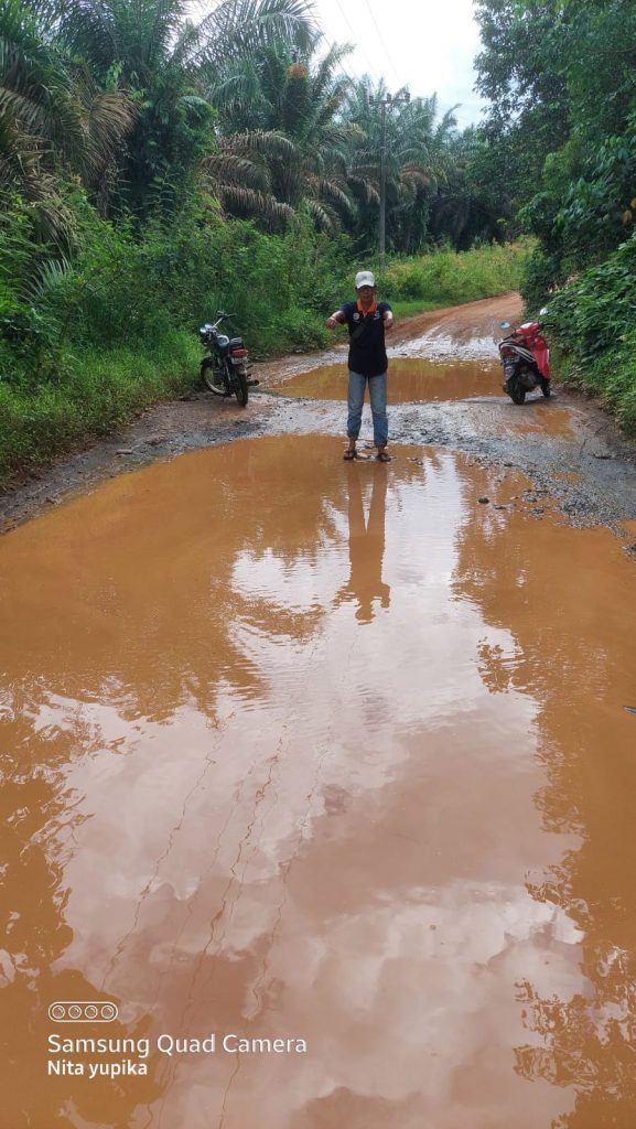 AKSES JALAN MENUJU DESA SUKA MAKMUR KECAMATAN GUMAY TALANG HANCUR BERLOBANG DAN DIGENANGI AIR