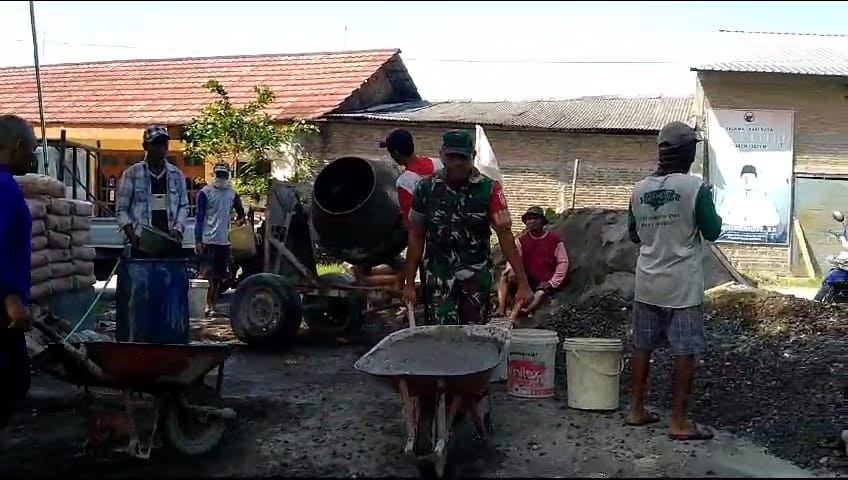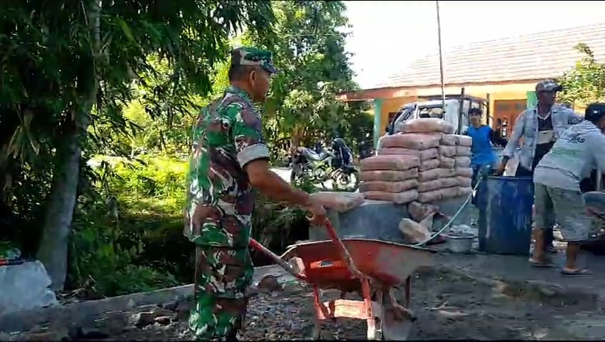 Babinsa bersama Masyarakat Garap Cor Jalan