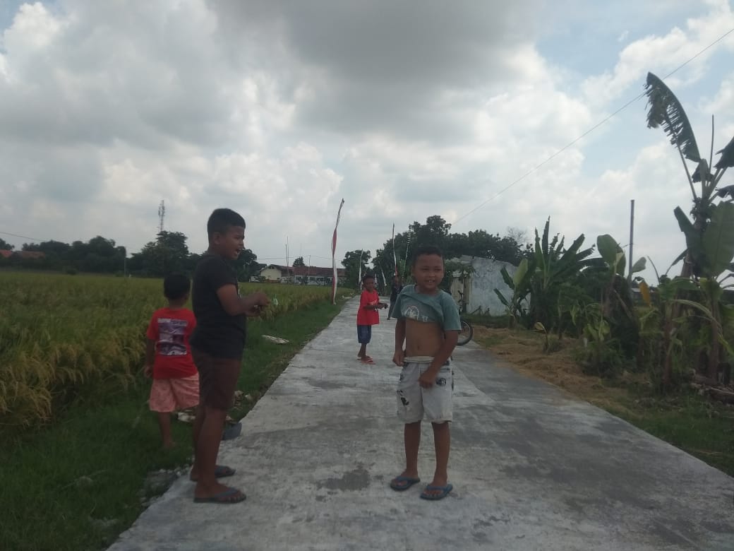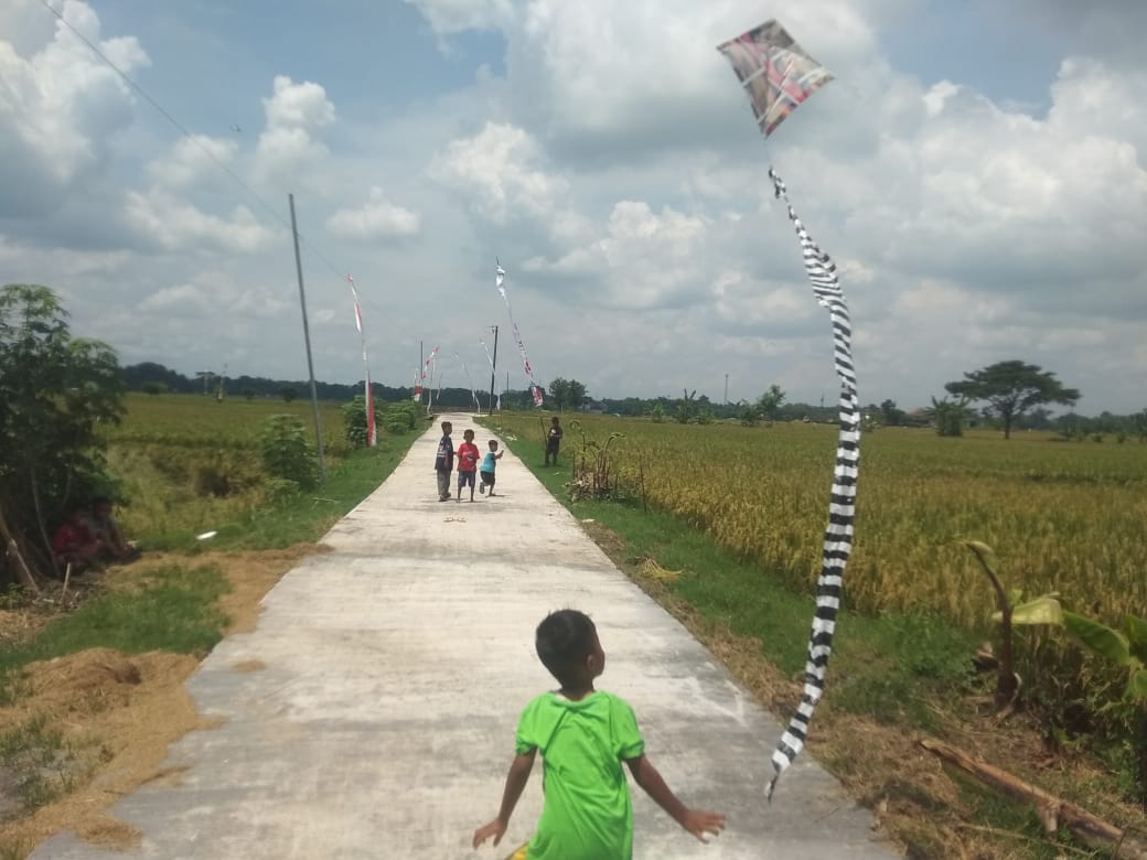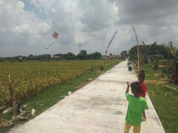 Sragen-Rajawali News Online, Jalan penghubung antar desa Gedongan menuju Desa Jabung yang dulu kalau hujan becek,dan sekarang sudah berubah total sekarang menjadi halus mulus yang pengerjaannya sekarang hampir selesai ,mulai di nikmati para warga sekitar dan sebagian anak-anak untuk bermain layang-layang.