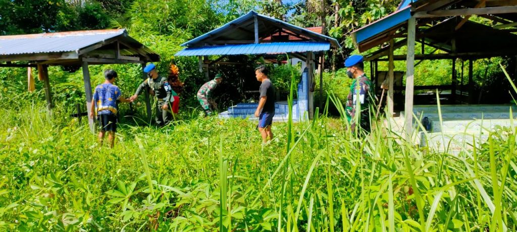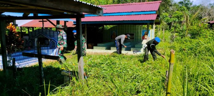 Bermodalkan Cangkul dan Sabit Personel Subdenpom XII/1-6 Putussibau Bersihkan Pemakaman Nasrani Sibau Hilir