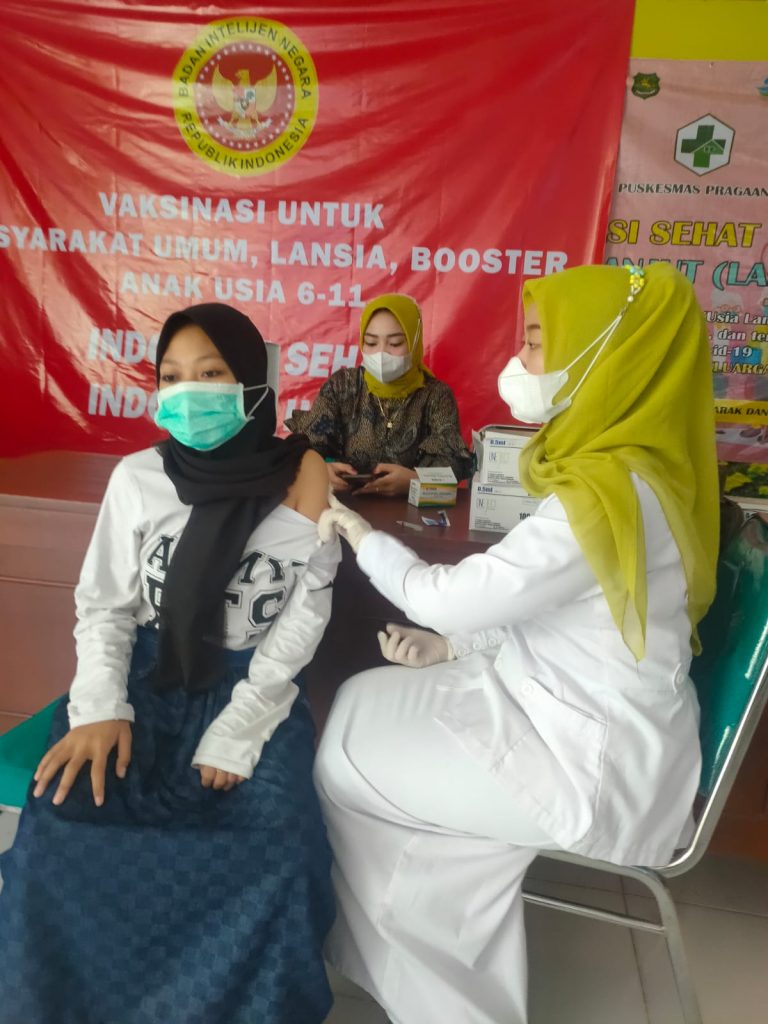 Sebagai upaya memproteksi dari ancaman virus Covid-19 ,Badan Intelijen Negara Daerah (BINDA) Jawa Timur terus gencar melaksanakan vaksinasi Covid-19. Kali ini, bekerja sama dengan Dinas Kesehatan Kabupaten Sumenep, BINDA Jatim melaksanakan Vaksinasi di Kecamatan Prenduan, Kabupaten Sumenep, Rabu (15/6/2022).