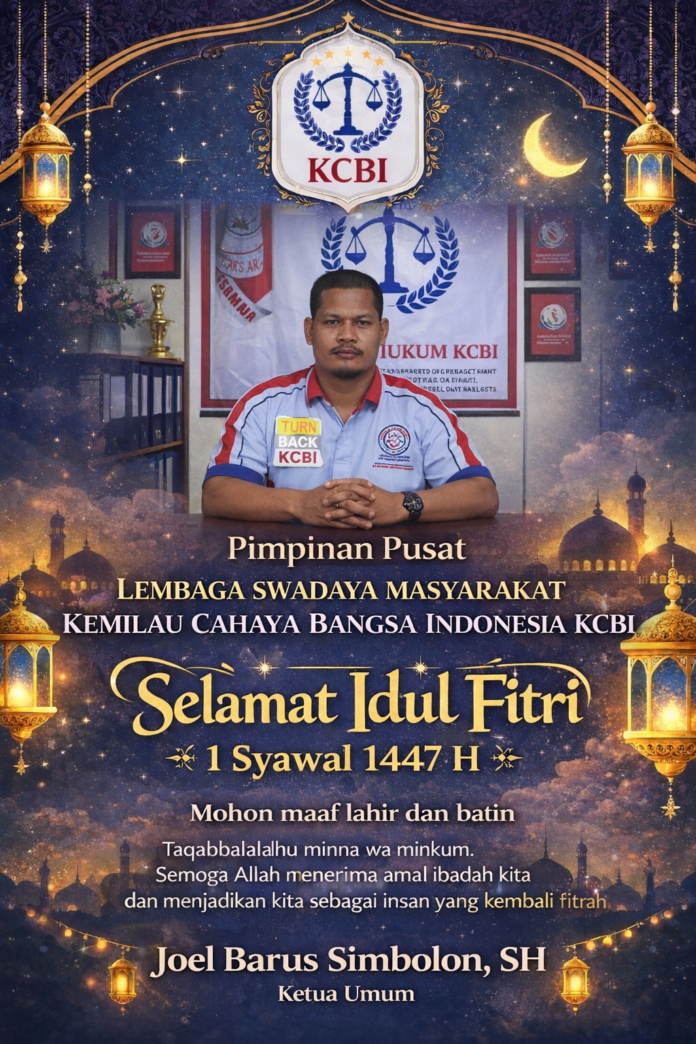 Ucapan tersebut disampaikan langsung oleh Ketua Umum LSM KCBI, Joel Barus Simbolon, SH, yang menegaskan bahwa Idul Fitri bukan sekadar perayaan seremonial, melainkan momentum strategis untuk memperkuat nilai kejujuran, integritas, dan kepedulian sosial di tengah kehidupan berbangsa dan bernegara.