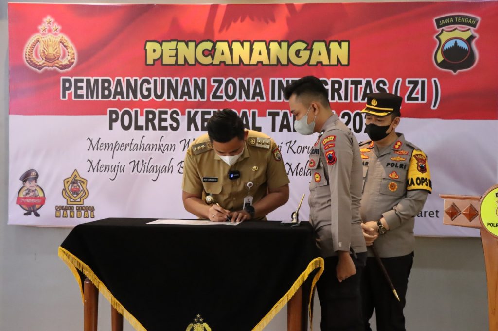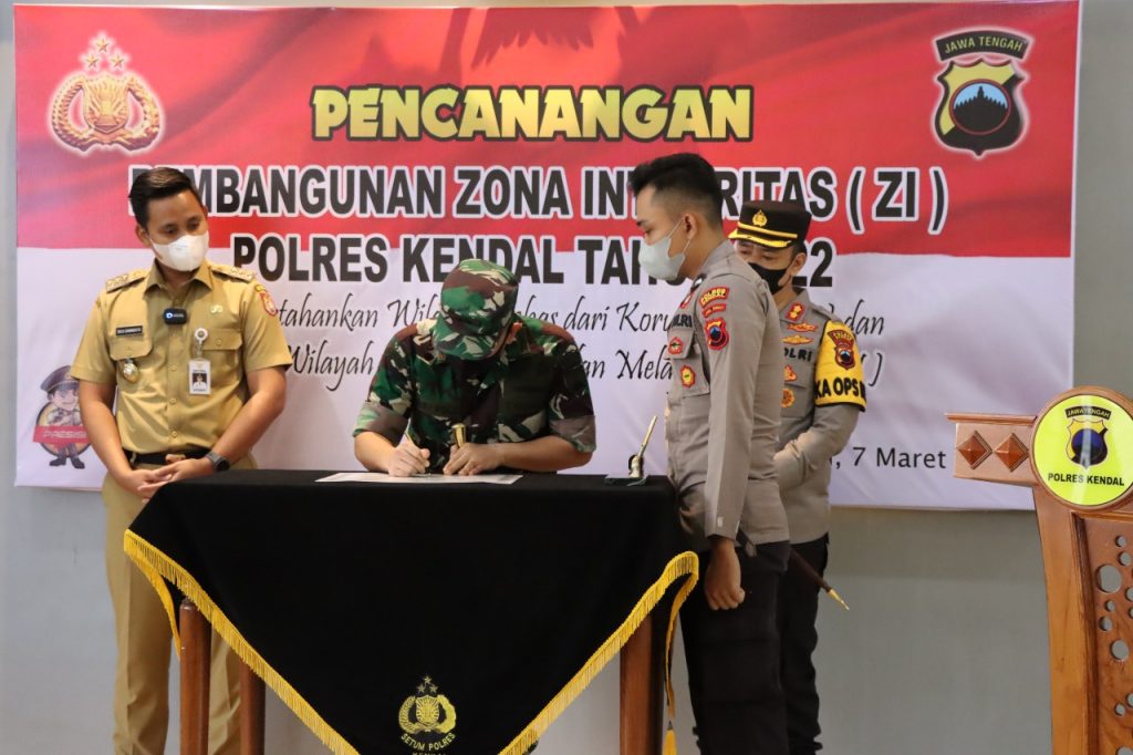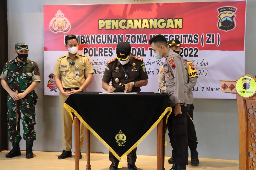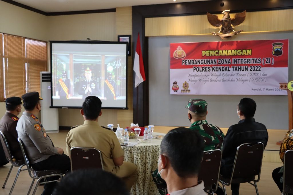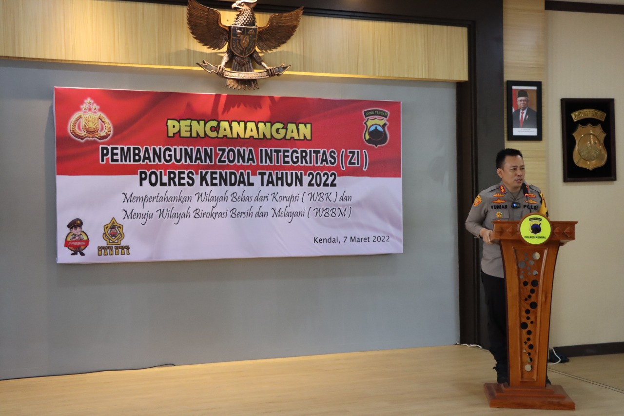 Kepolisian Resor (Polres) Kendal, melaksanakan giat sosialisasi pencanangan pembangunan Zona Integritas (ZI) menuju Wilayah Bebas dari Korupsi (WBK) dan Wilayah Birokrasi Bersih dan Melayani (WBBM) Tahun 2022 di lingkungan Polres Kendal, di Ruang Aula Mapolres Kendal, Senin (7/3/2022).