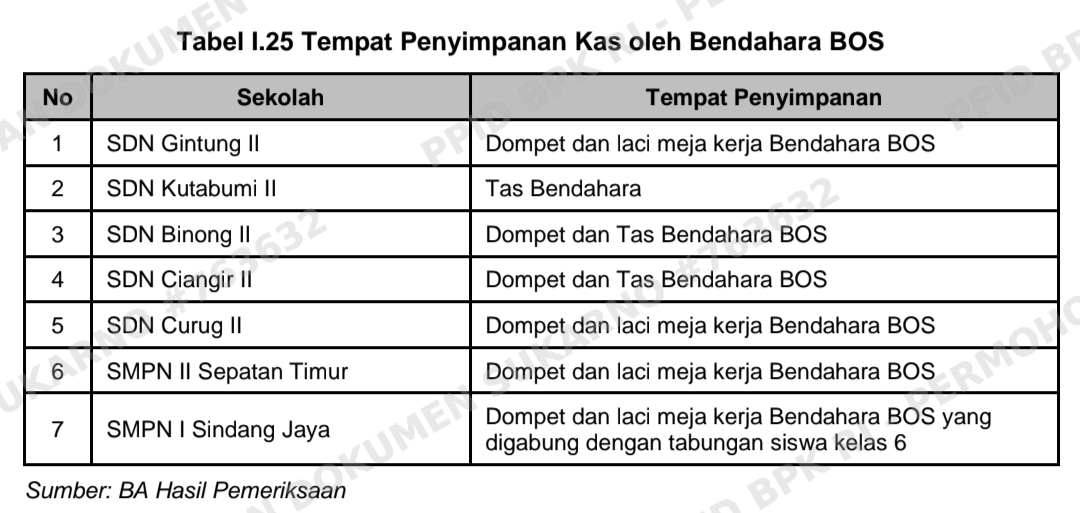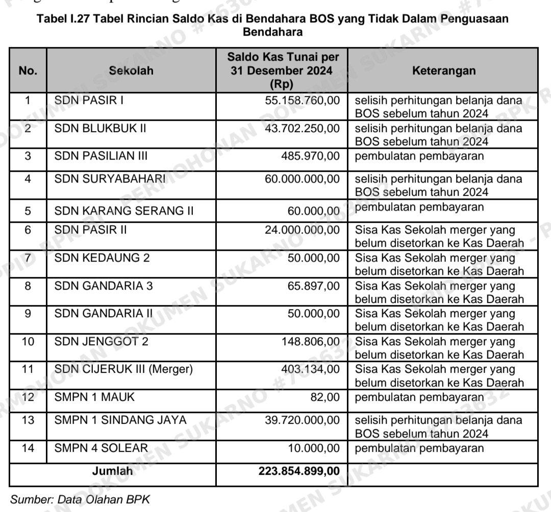 Pengujian atas transaksi tunai selama tahun 2024 atas seluruh sekolah diketahui