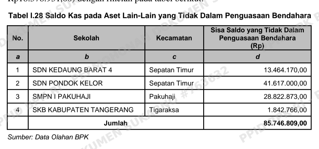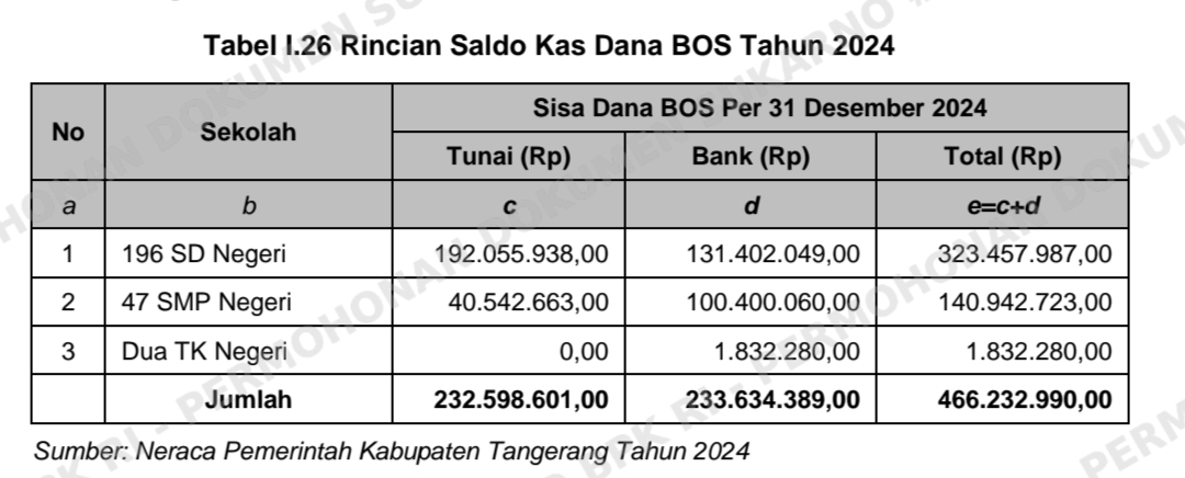 Pemerintah Kabupaten Tangerang menyajikan saldo Kas di Bendahara BOS