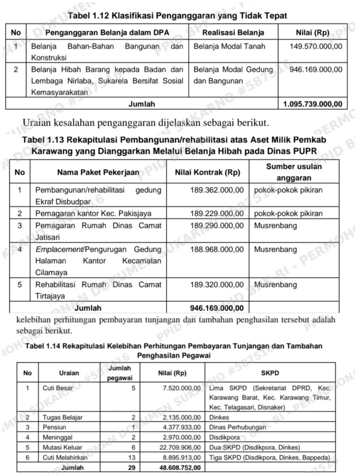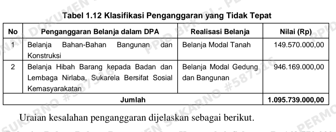 Ruang (PUPR) menunjukkan adanya kesalahan penganggaran dengan penjelasan sebagai