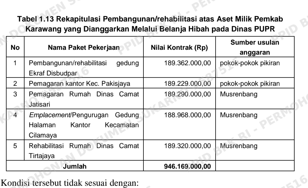 pembangunan/rehabilitasi atas gedung/aset milik Pemerintah Kabupaten Karawang