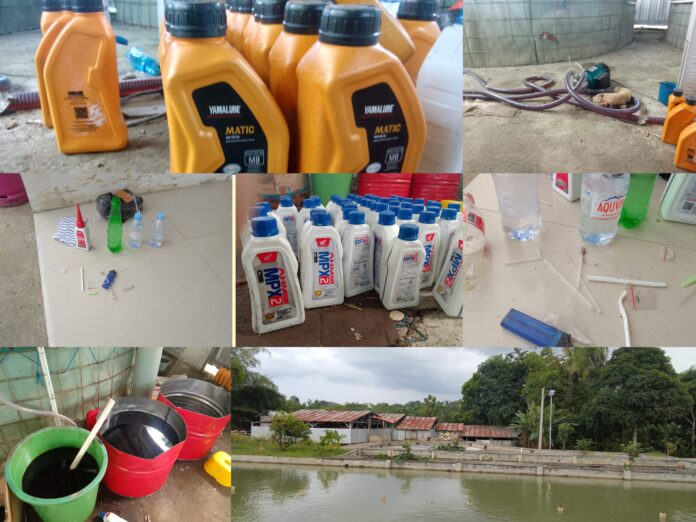 • Dugaan penyulingan oli palsu dengan peralatan yang terpasang rapi,