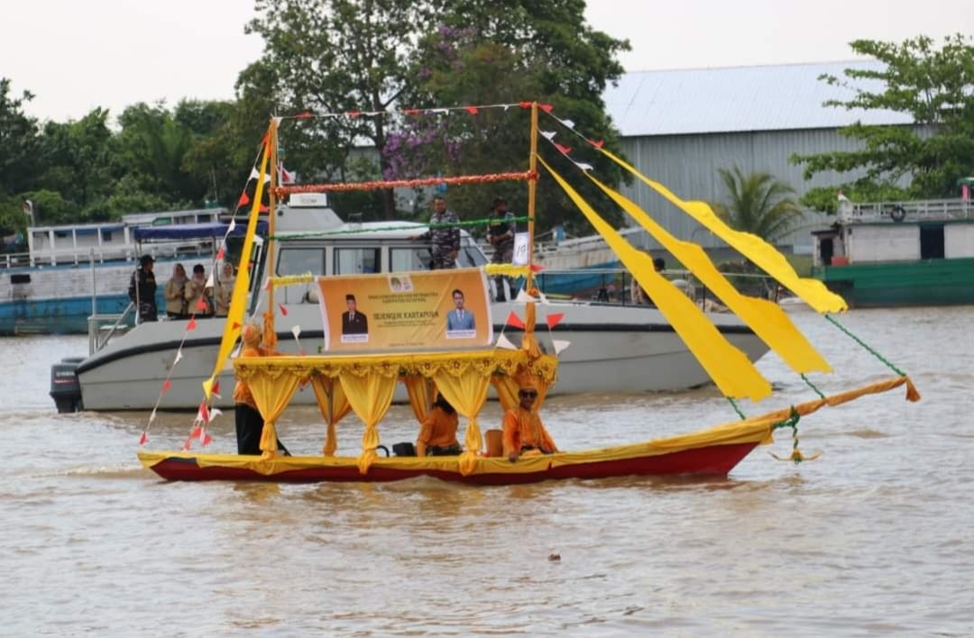 Kato hias dan Perahu Lancang Kuning itu berlayar dari area Keraton Matan Tanjungpura hingga ke kawasan Taman Merdeka Kecamatan Delta Pawan.