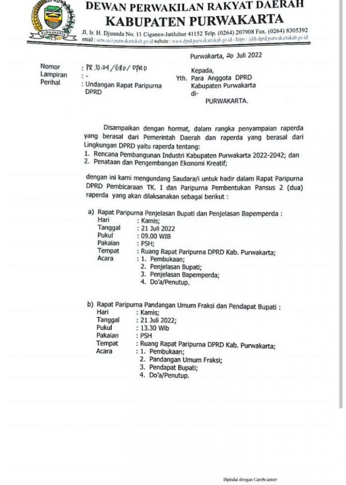 PURWAKARTA, Media Rajawalinews – Hal luar biasa terjadi dalam Rapat Paripurna I DPRD Purwakarta yang membahas rencana pembangunan industri Kabupaten Purwakarta 2022-2024 dan penataan dan pengembangan ekonomi kreatif, Kamis 21 Juli 2022.