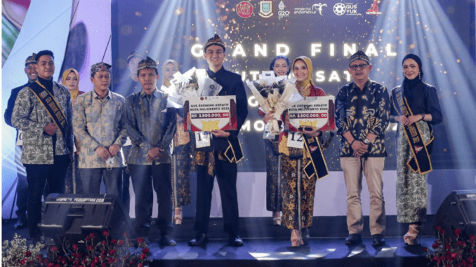 Gus Diggo dan Yuk Dina berhasil unggul dari 18 finalis lainnya dalam grand final pemilihan duta wisata Kota Mojokerto tersebut.