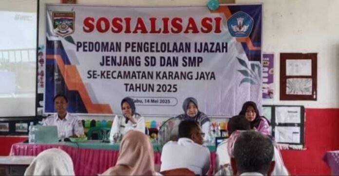 Sosialisasi ini berlangsung di SDN 2 Karang Jaya, Kecamatan Karang Jaya, Rabu (14/5/25) yang melibatkan para kepala sekolah, operator sekolah, dan guru dari berbagai SD dan SMP di wilayah tersebut. Kepala Bidang Pembinaan Pendidikan Dasar, Heni Dwi Ningsi, S.Pd., M.Pd., hadir langsung memberikan materi sekaligus membuka kegiatan secara resmi.