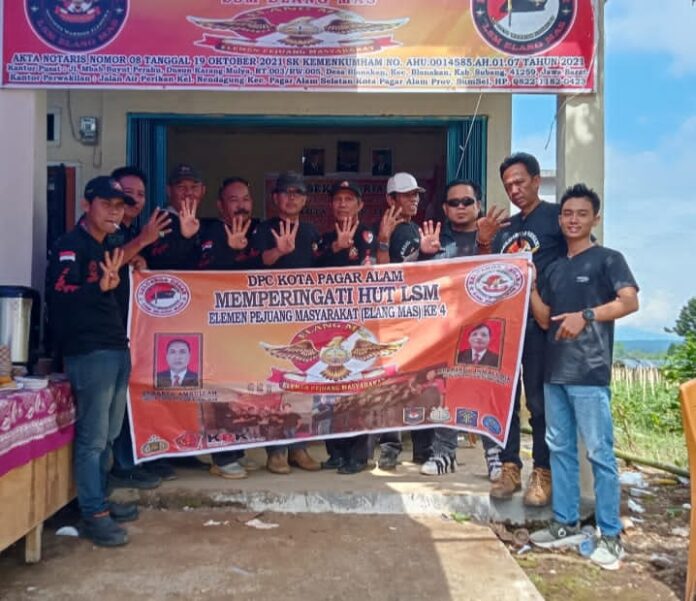 Pagar Alam,- Rajawalinews,- DPC LSM Elang Mas (Elemen Pejuang Masyarakat) Rayakan Hari jadi yang ke 4 ( Empat) tahun, Perayaan di Laksanakan di Sekretariat DPC LSM Elang Mas Kota Pagar Alam jalan Jalur dua Pematang Bango, Kelurahan Curup Jare Kecamatan Pagar Alam Urara Kota Pagar Alam, Selasa 21/10/2025.