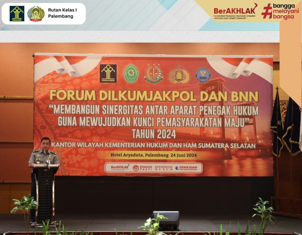 Rumah Tahanan Negara Kelas I Palembang Mengikuti Forum Dilkumjakpol dan BNN degan tema “Membangun Sinergitas Antar Aparat Penegak Hukum Guna Mewujudkan Kunci Pemasyarakatan Maju”. Tahun 2024.