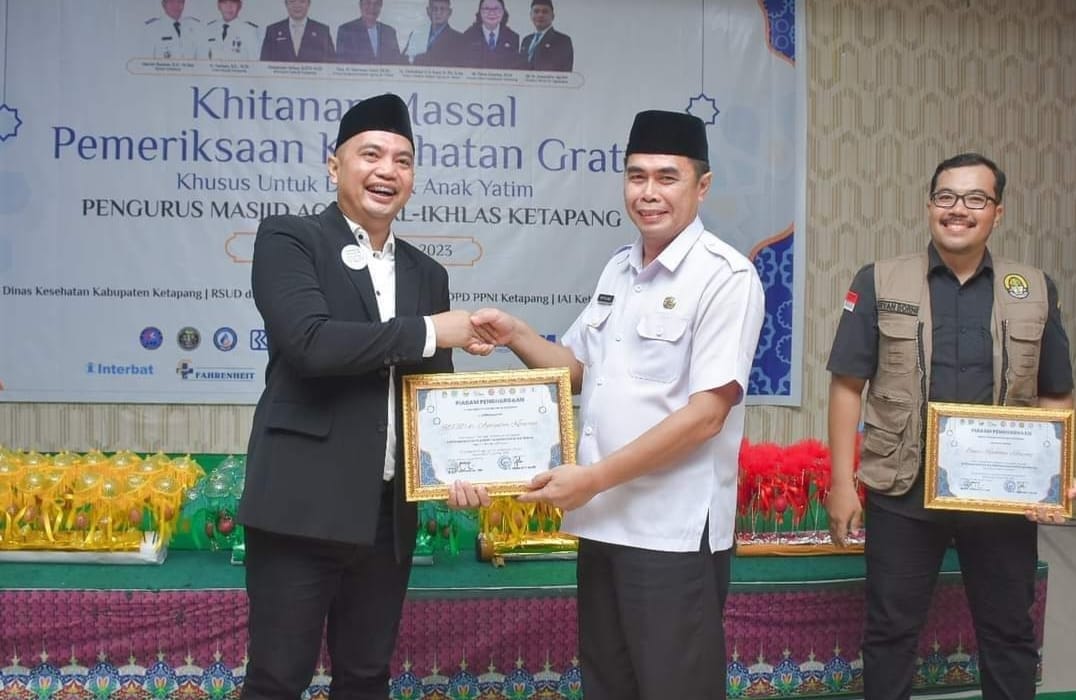 Wakil Bupati (Wabup) Ketapang H. Farhan, SE.,M.Si hadiri khitanan (sunat) massal dan pemeriksaan kesehatan gratis yang diselenggarakan oleh pengurus Masjid Agung Al-Ikhlas Ketapang di Halaman Masjid pada Rabu, (27/12/2023) siang.