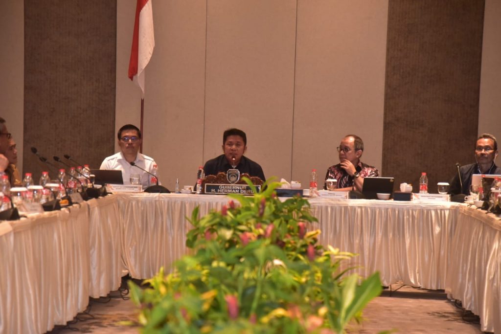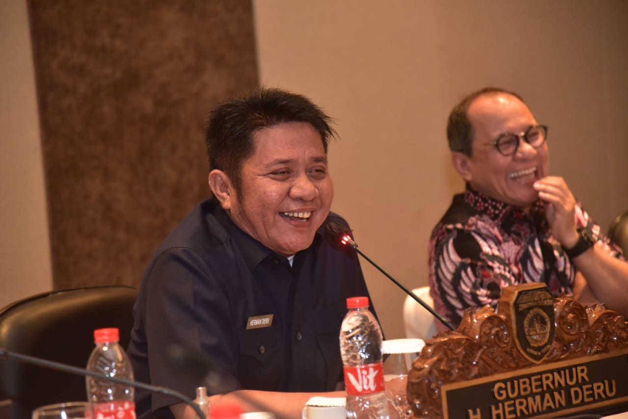 Kepala Badan Pangan Nasional Arief Prasetyo Adi dan Gubernur Sumatra Selatan (Sumsel) Herman Deru menghadiri focus discussion group (FGD) masalah pangan di Hotel Santika Prmiere Palembang, Sumsel, pada Selasa (28/2/2023).