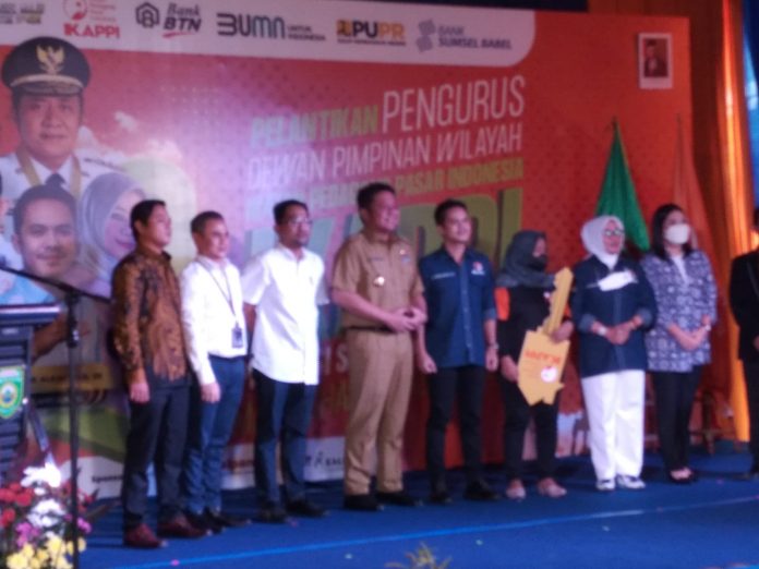 Pelantikan Dewan pengurus wilayah (DPW) Ikatan Pedagang Pasar Indonesia (IKAPPI) Sumatera Selatan yang dilaksanakan di pasar kebun Bunga km 9 Palembang, (12/9/22).