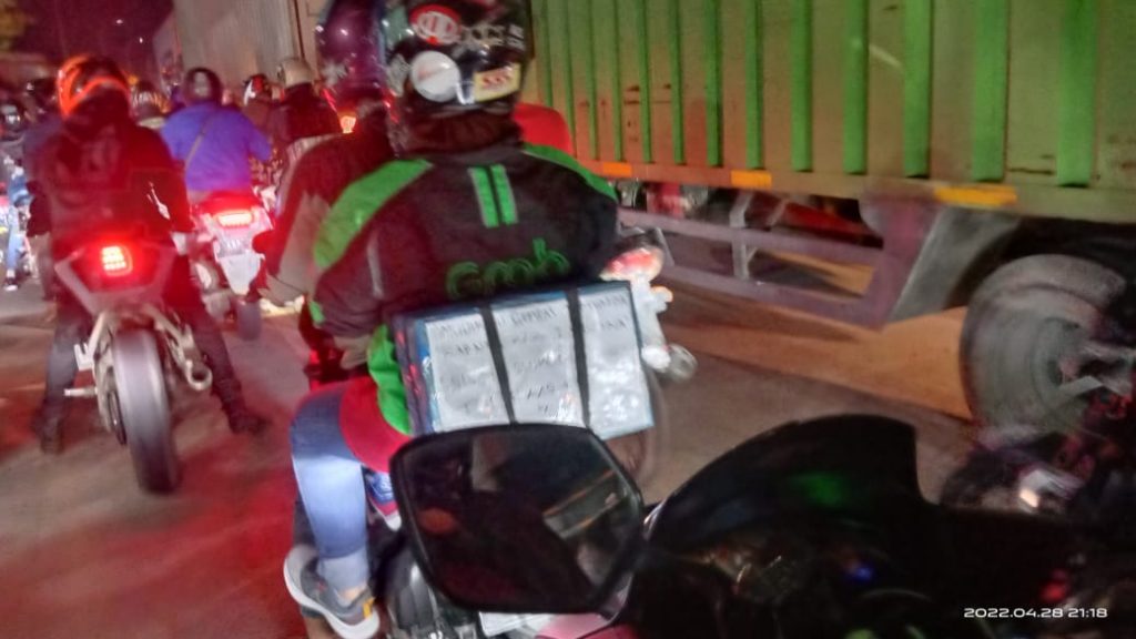 Di kesempatan yang sama, Ketua DPD IWO Indonesia Kabupaten Bekasi, Suryo Sudharmo membeberkan Mudik Unik di Lebaran kali ini, aksi pemudik pengendara roda 2 atau motor yang terpantau di lokasi itu unik-unik, mereka membubuhkan ‘kata mutiara’ unik di belakang gembolan nya.