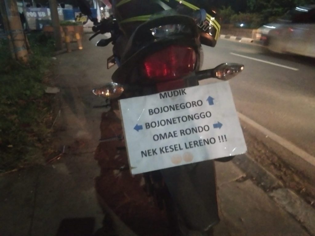 Begitu tulisan unik yang menghiasi kendaraan para pemudik di Tahun 2022 ini. Pungkas Suryo Sudharmo