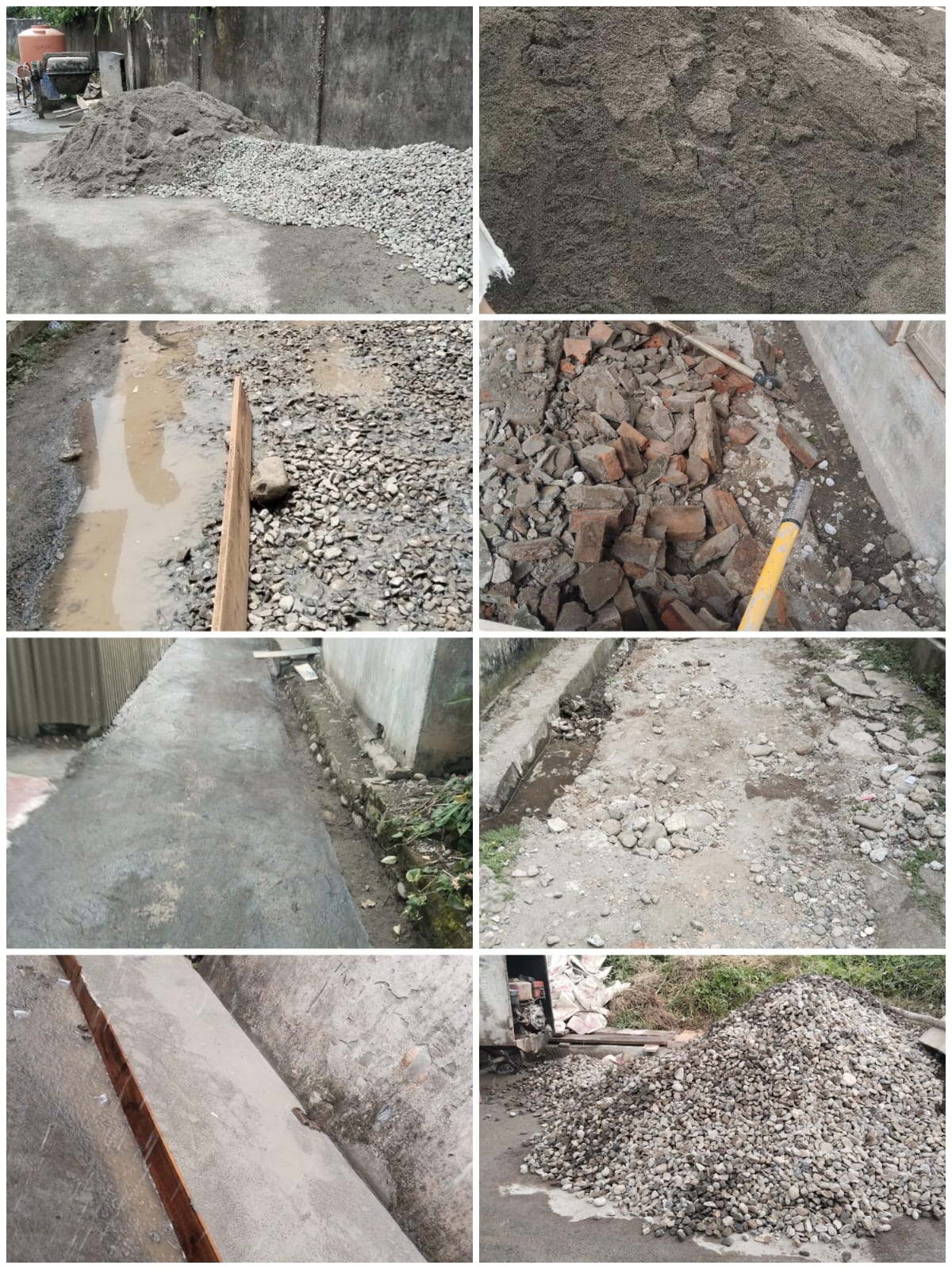 Untuk ketebalan juga banyak yang ditimbun menggunakan bekas bongkaran jalan lama bahkan ada yang diisi menggunakan batu batah bekas,ketebalannya juga tidak sesuai standar cor beton kurang dari 10 cm.