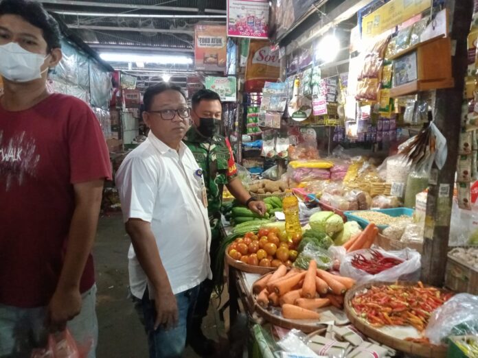 Babinsa Kelurahan Danukusuman Koramil 03/Serengan Kodim 0735/Surakarta, Serda Tito melaksanakan pemantauan wilayah di pasar Harjodaksino Jl Yos Sudarso Danukusuman Serengan Kota Surakarta, Jum’at pukul 09.30 Wib (15/12/2023)