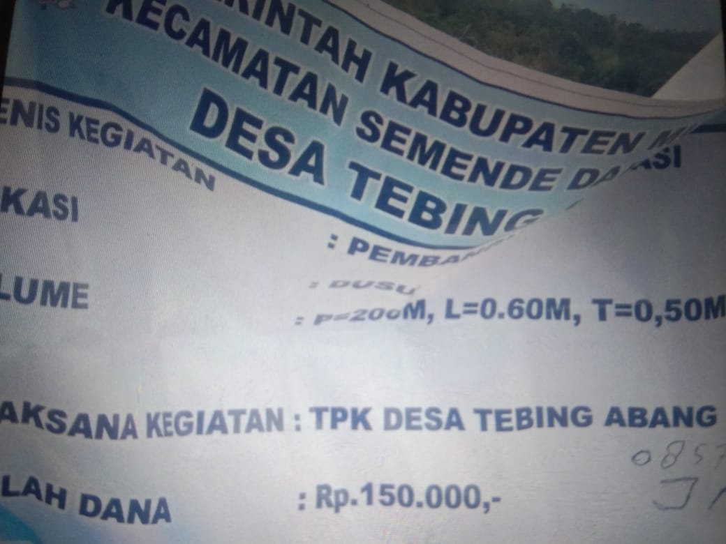 Baru seumur agung Sudah Hancur , pungkasnya Sehubungan Kepala Desa Tebing Abang Umarlin tidak Ada jawaban sampai berita ini dimuat apa adanya