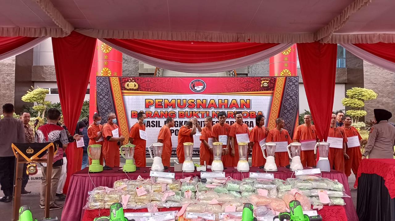 Kapolda Sumsel Musnahkan Barang Bukti Narkoba Jenis Sabu dan Ekstasi Senilai Ratusan Miliar Rupiah