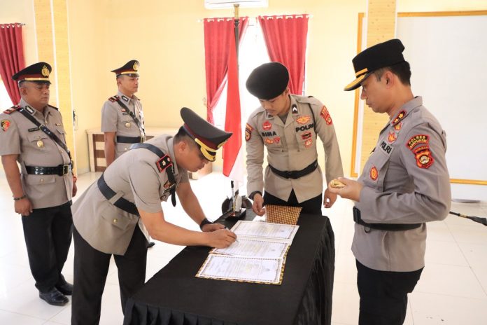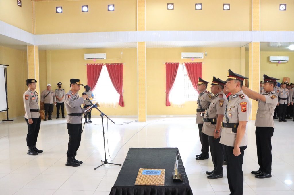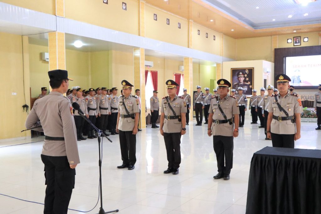 Bertempat Di Aula Sanika Satyawada Mapolres Banyuasin, Kapolres Banyuasin AKBP Imam Safii,S.I.K.,M.si Pimpin upacara serah terima jabatan (sertijab) Kabag Ops,Kasat Tahti dan Kapolsek Muara Telang yang dihadiri oleh PJU Polres Banyuasin serta anggota Polres Banyuasin, Rabu (02/11/22)