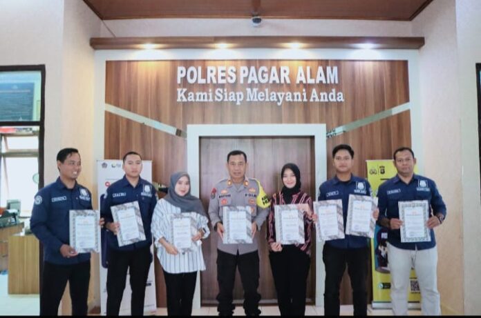 Pagar Alam,- Rajawalinews,- Kapolres Pagaralam AKBP Erwin Aras Genda SH. S.Ik. MT Memberikan Penghargaan Kepada 7 Personil Humas Polres Pagaralam Berprestasi yang telah Berdedikasi tinggi dalam Mempublikasikan dan Memviralkan Berita – berita Positif serta kegiatan Polres Pagaralam dalam Rangka Meningkatkan Kepercayaan Masyarakat kepada Polri.