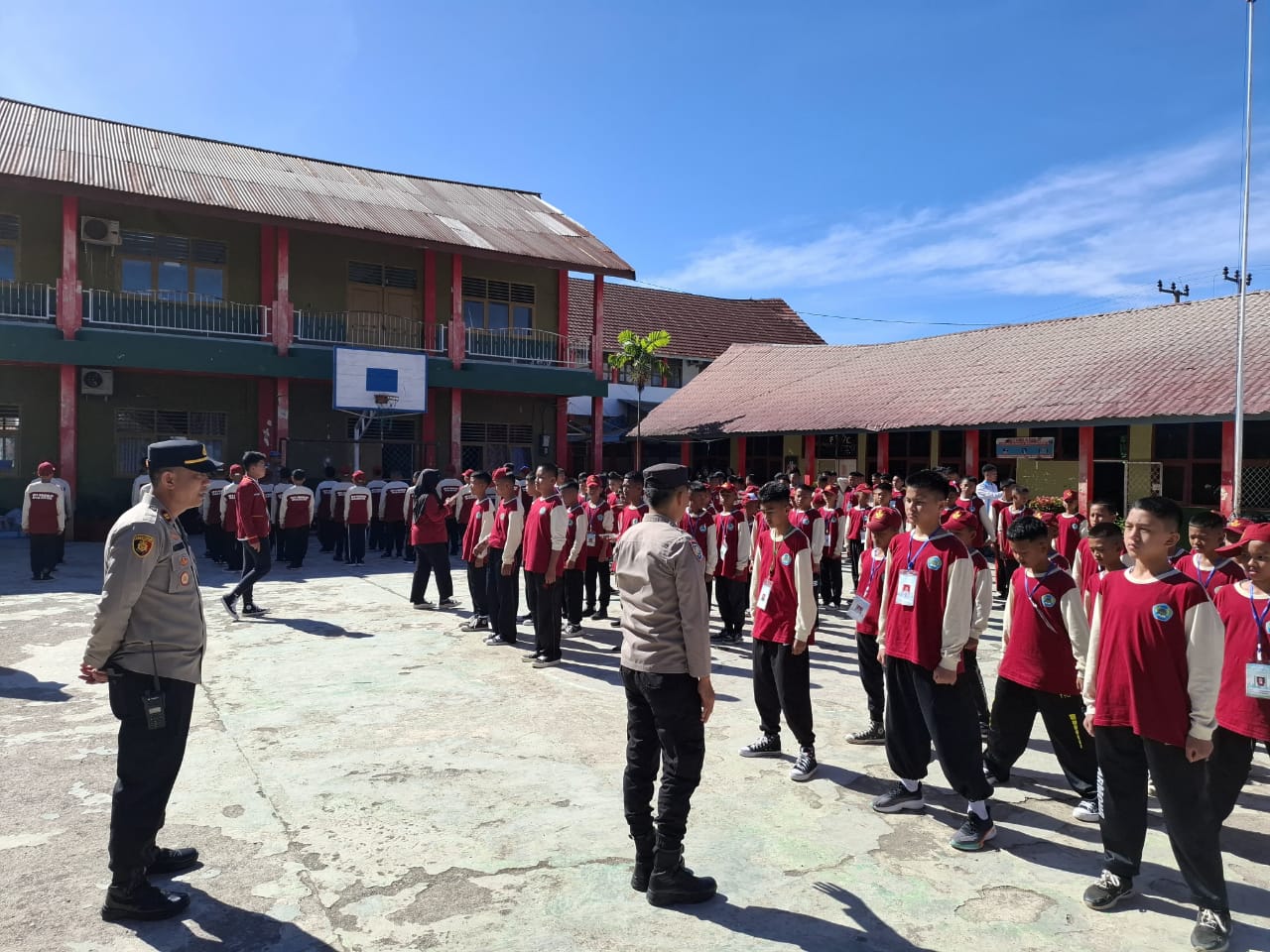 “Kami memberikan materi dasar seperti Peraturan Baris Berbaris (PBB), Edukasi bahaya Narkoba, Penanganan bullying, serta Pentingnya taat Pada Peraturan lalu lintas dan Sekolah. Tujuannya agar sejak awal Para Pelajar memiliki dasar moral dan disiplin yang kuat, serta menjauhi Narkoba yang dapat merusak Jiwa dan mental ujar Iptu Akhirudin SH yang turut didampingi Oleh Kasi Humas Iptu Mansyur SH.