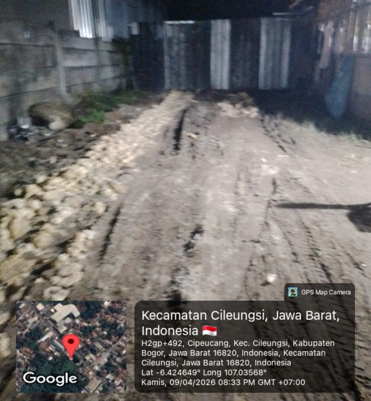 Berdasarkan pantauan di lapangan pada Kamis malam (09/04/2026), area tersebut tampak tertutup rapat dengan akses terbatas melalui pintu seng tinggi. Kondisi jalan menuju lokasi terlihat rusak dan berlumpur, diduga akibat aktivitas kendaraan berat yang keluar masuk secara intensif, terutama pada malam hari.