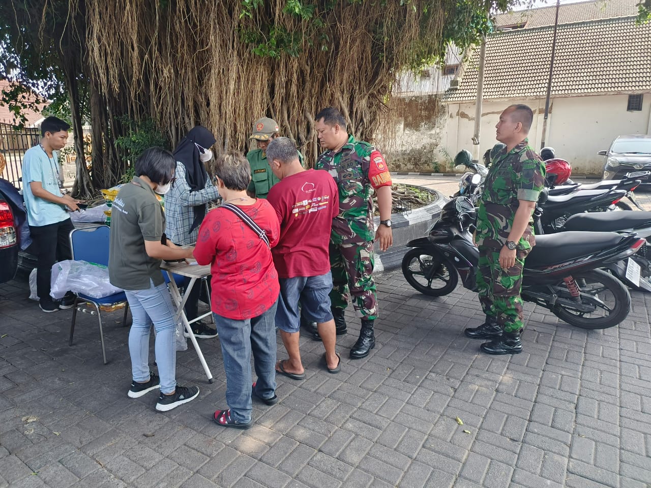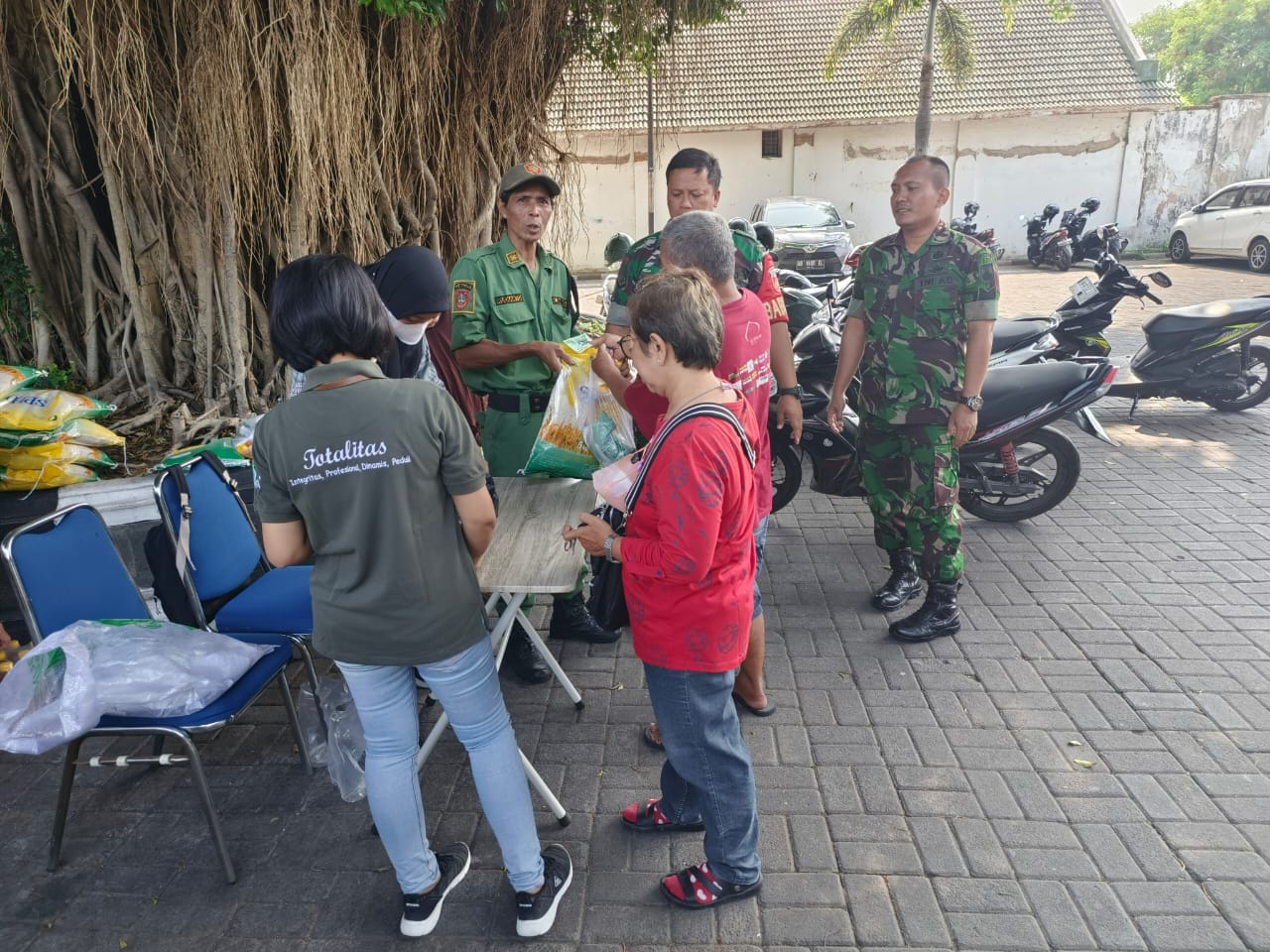 Babinsa Kelurahan Kemlayan Koramil 03 Serengan Kodim 0735 Surakarta Serda Catur Handoko & Bati Wanwil Serma Mugiyanto melaksanakan pendampingan kepada Bulog Kota Surakarta dalam Penjualan Sembako murah di peruntukkan warga Kemlayan di jalan Langen Asmoro RT 04 RW 06 Serengan Kota Surakarta, Jum’at pukul 09.00 Wib (24/11/2023)