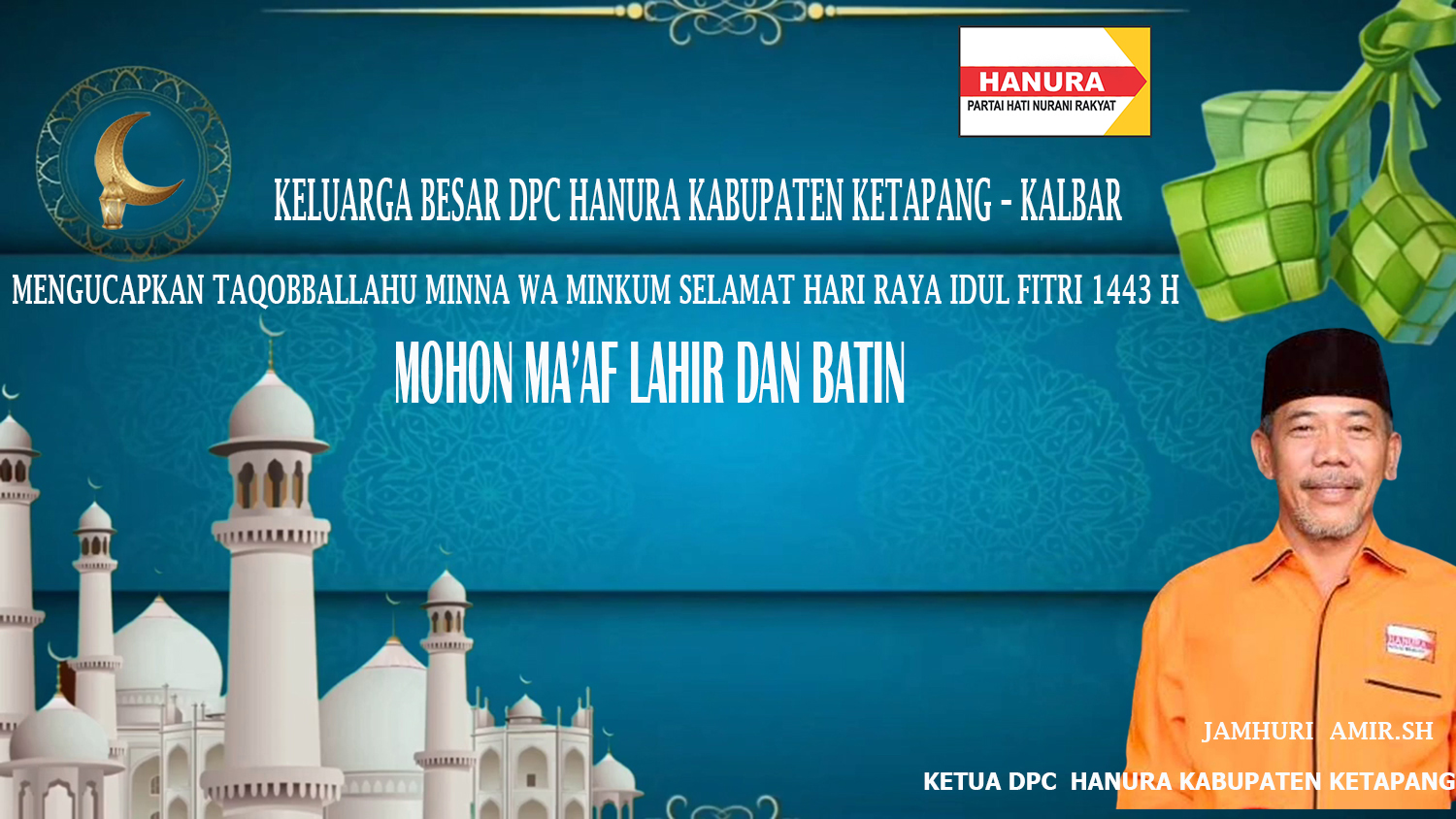 KELUARGA BESAR DPC HANURA KABUPATEN KETAPANG – KALBAR MENGUCAPKAN TAQOBBALLAHU MINNA WA MINKUM SELAMAT HARI RAYA IDUL FITRI 1443 H MOHON MA’AF LAHIR DAN BATIN