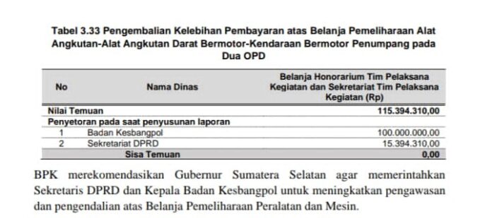 Sumsel Rajwali News -Temuan BPK terhadap pertanggungjawaban belanja pemeliharaan kendaraan dinas di Sumatera Selatan sungguh memalukan. Bagaimana mungkin kendaraan yang tidak pernah masuk bengkel bisa diklaim seolah-olah sudah diperbaiki dengan nilai mencapai Rp100 juta? Lebih parah lagi, ada kendaraan yang sedang dipakai perjalanan dinas namun dalam laporan justru tercatat menjalani pemeliharaan di bengkel. Inikah wajah birokrasi kita?