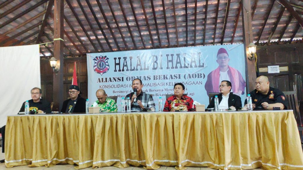Aliansi Ormas Bekasi (AOB) menggelar acara Halal Bi Halal dalam tema Konsolidasi dan Optmliasasi Kelembagaan dengan Bersinergi dan Bergerak Bersama Merebut 2024 Untuk Masyarakat Kabupaten Bekasi Lebiih Baik Lagi, di Warnawarni Kalimalang Tambun, pada Rabu 29/06/2022.