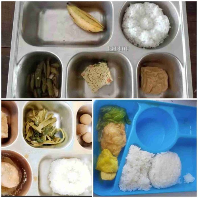 Menu MBG seharusnya dianggarkan Rp 10.000 per anak dan wajib menyajikan dua jenis lauk pendamping yang memadai. Namun, foto yang beredar menampilkan porsi yang jauh dari standar layak: