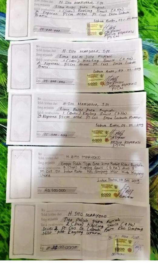 Indikator pihak koperasi PSCM di Desa Lubuk Batu, KTA pemilik Koperasi menjadi ajang bisnisnya sendiri, jual beli KTA (Kartu Tanda Anggota) Koperasi kepada orang yang lain seperti hak pribadi sendiri,” seloroh celotehnya Sumar. Ketua Koperasi Oesman memperjual-belikan kepada H.SITO MARYONO,S.PT, semua berpindah tangan dari pemilik aslinya pindah ketangan orang lain, kebun Plasma milik masyarakat Domosili masyarakat setempat punya kebun sawit di Divisi 3 di jual Ketua Koperasi PCSM Oesman kepada orang lain dengan bukti Kwitansi materai 6000 Di tanda tangani Ketua Koperasi Oesman PSCM.