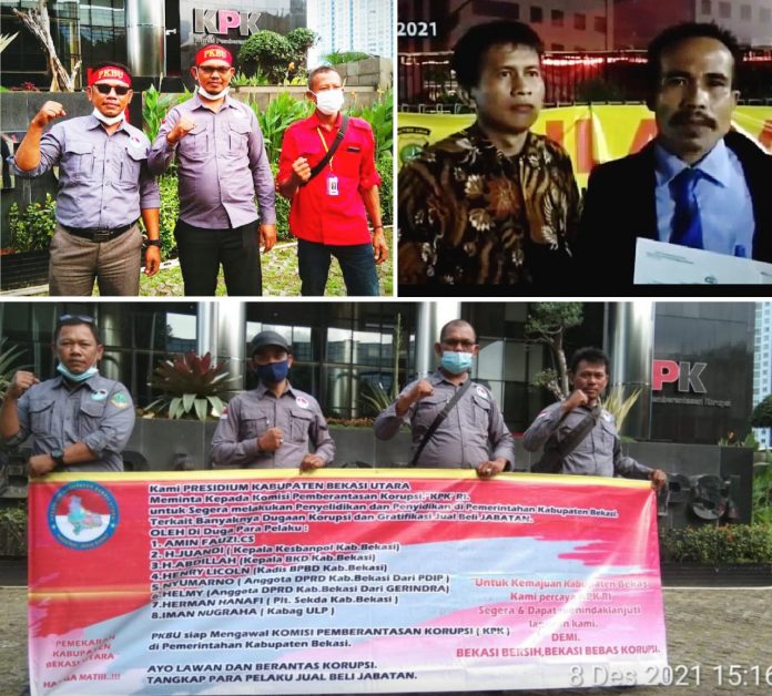 Terkait pasca berita Viral dan Spanduk serta Vidio Presidium Kabupaten Bekasi Utara di Medsos yang bertuliskan diduga Korupsi dan Gratifikasi Jual Beli Jabatan kepada Delapan Orang diantaranya adalah salah Satu Tokoh Masyarakat dan Dua Orang Anggota Dewan serta Lima Orang Pejabat Kabupaten Bekasi, bahwa Presidium Kabupaten Bekasi Utara telah menuliskan di Spanduk Delapan orang Nama – nama tersebut yaitu :
