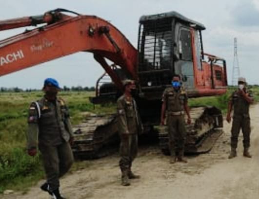 Satpol PP Deli Serdang berhasil menertibkan sekaligus menghentikan dua unit ekskavator di lahan galian C ilegal di Desa Sena Kecamatan Batang Kuis.