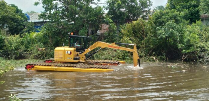 Dalam rangka mengantisipasi kemungkinan terjadi bencana banjir terulang, Pemerintah Kabupaten (Pemkab) Banyuasin melalui Dinas PUPR Banyuasin melaunching penggunaan alat Amphibious untuk normalisasi sungai Gasing di Kecamatan Talang Kelapa, Rabu (13/03/2024).