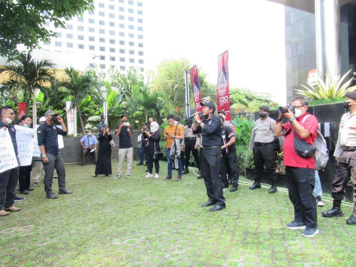 Feri yana selaku Korlap I (JAMBAKK) aksi unras saat digedung kpk menyampaikan bahwa mendesak kepada komisi pemberantasan korupsi (KPK) untuk segera dan memanggil dan menangkap oknum pejabat bank banten yang diduga telah memberikan Fasilitas kredit sekitar 65 miliyar pada tahun 2017 lalu .