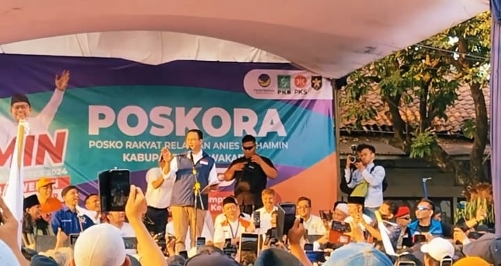 Partai pengusung dan simpatisan serta simpul relawan pemenangan sambut Anies Baswedan di Kabupaten Purwakarta, kehadiranya di kota yang terkenal dengan sate maranggi itu tak lainb untuk resmikan Posko Relawan Anies-Muhaimin (Poskora) di Purwakarta Jawabarat.