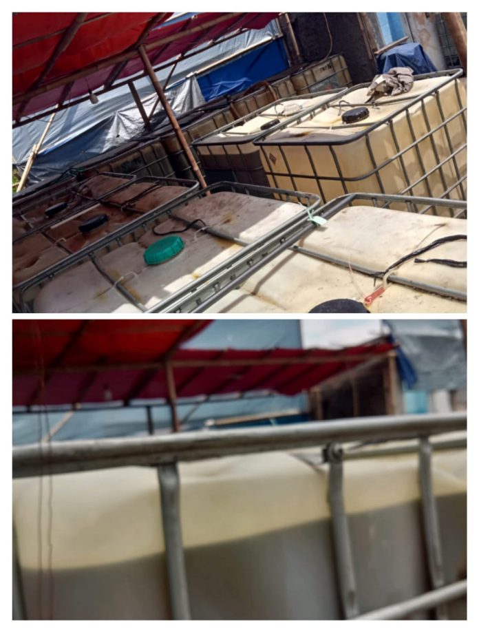Ketika awak media menginvestigasi lahan berpagar seng yang menjadi pangkalan pengepulan solar itu, tampak puluhan wadah plastik (kempu) eks kimia berisi cairan yang diduga solar.