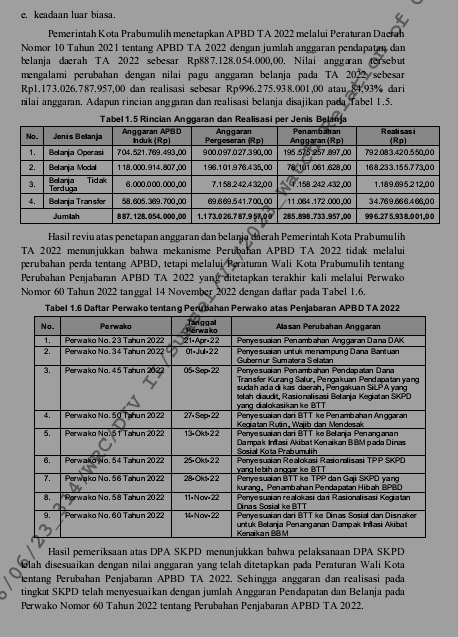 c. keadaan yang menyebabkan SiLPA tahun anggaran sebelumnya harus digunakan dalam tahun anggaran berjalan;