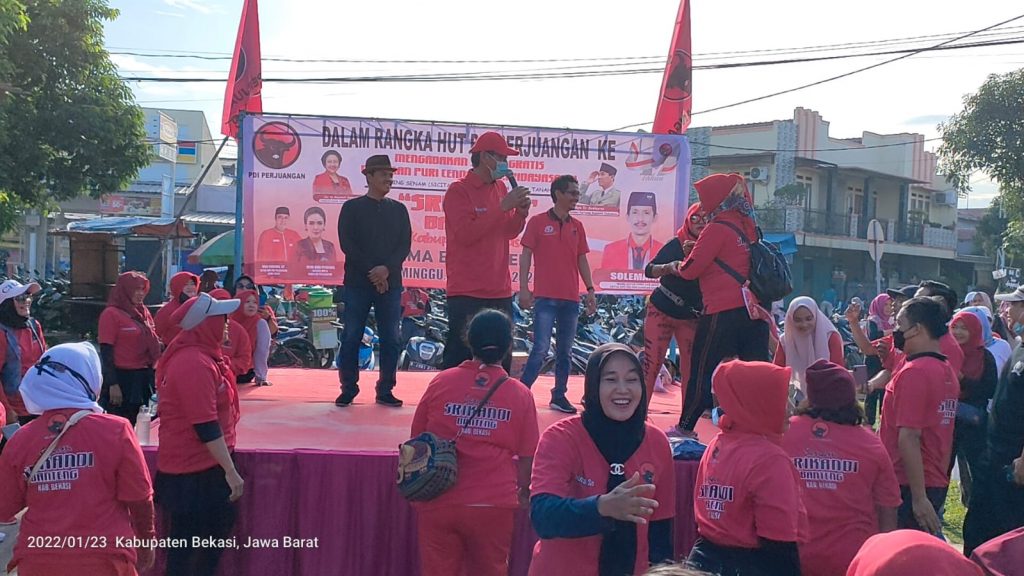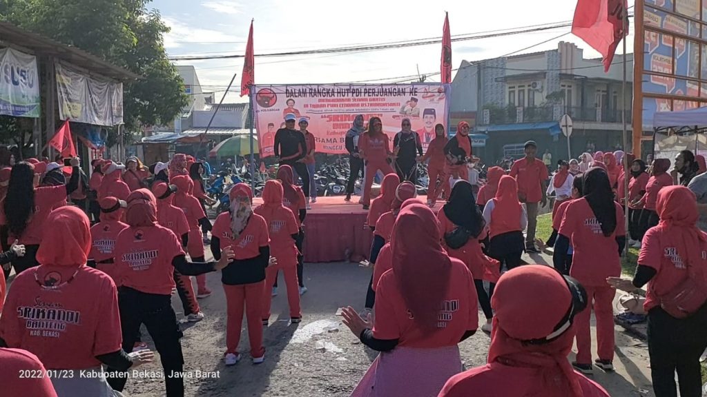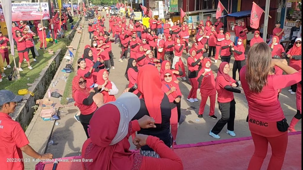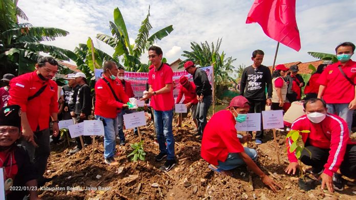 DPC PDI Perjuangan Kabupaten Bekasi launching Gerakan Senam Cinta Tanah Air (Sicita) di wilayah Desa Tridayasakti, Kecamatan Tambun Selatan dan menanam pohon pendamping makanan, di Desa Jayabakti, Kecamatan Cabangbungin.