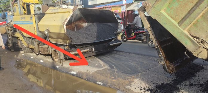 Awal kegiatan pelaksanaan penghamparan AMP di lokasi tidak dibersihkan dan penyiraman princot tidak merata sebagai bahan perekat AMP. Disinyalir dalam pelaksanaan ada beberapa iteam yang dihilangkan terkesan proyek Mark-Up mengurangi mutu dan kualitas.