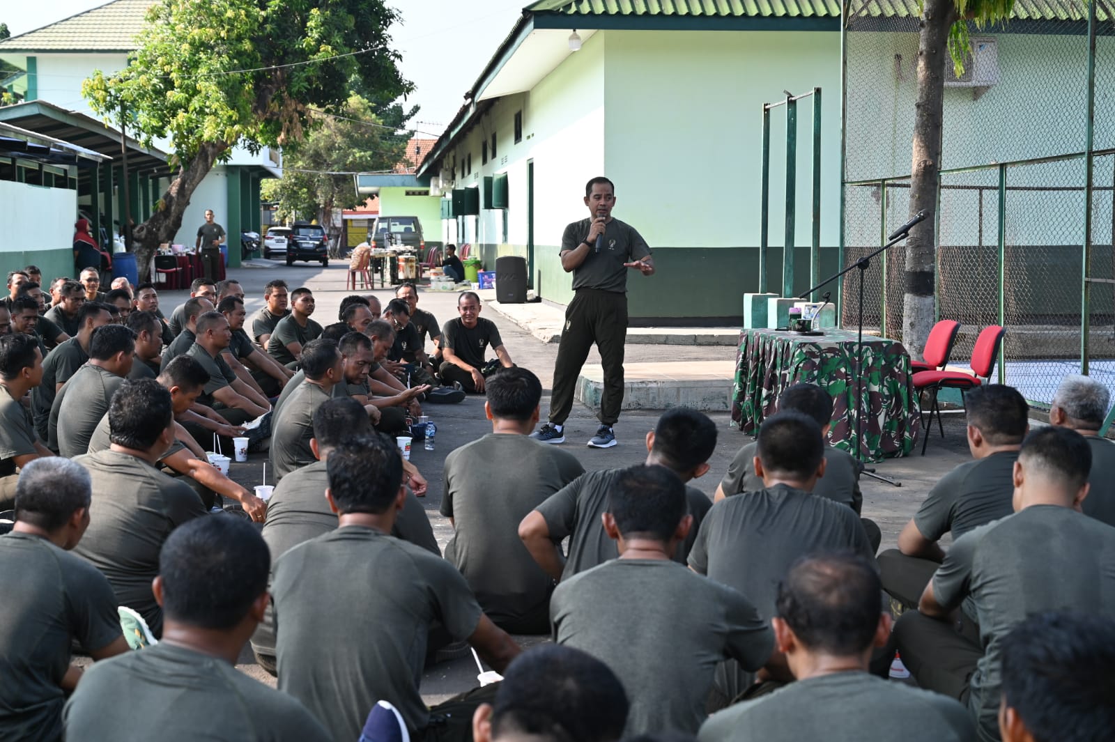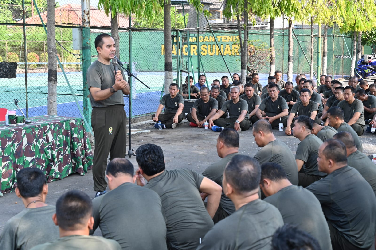 Setelah kegiatan Lari bersama Dandim 0726/Sukoharjo bersama anggota melaksanakan sarapan bersama di samping lapangan tenis dan dilanjutkan dengan memberikan Jam Komandan dan Santi Aji oleh Dandim 0726/Sukoharjo.