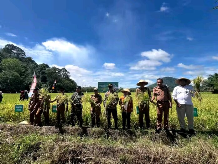 MURATARA, – Panenan raya di desa bukti langkap, kecamatan karang jaya wujudkan keseriusan pemerintah kabupaten musi rawas utara (Muratara), provinsi sumatera selatan memperhatikan sektor pertanian. Senin, 07/04/2025 .