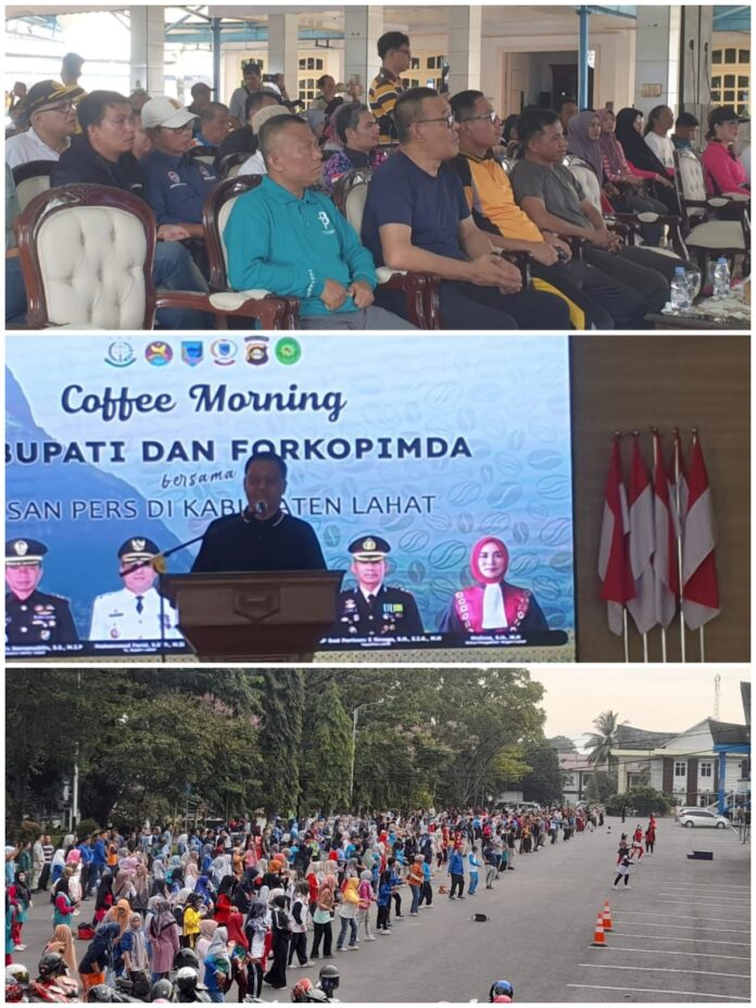 Muhammad Farid langsung menuju halaman Kantor Pemerintah Kabupaten Lahat mengikuti senam bersama dan coffe morning bersama Insan Pers di Kabupaten Lahat.