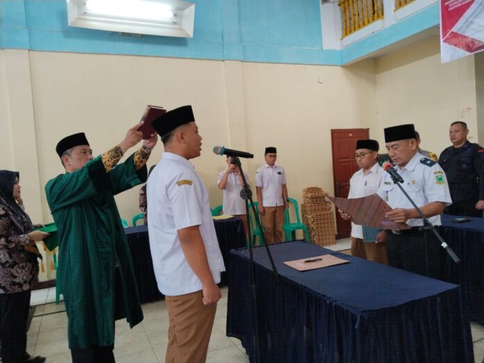 Proses sumpah jabatan tersebut berlangsung khidmat dan dilanjut dengan penandatangan SK bagi Maulana Ibrahim.